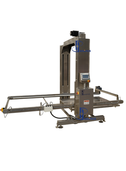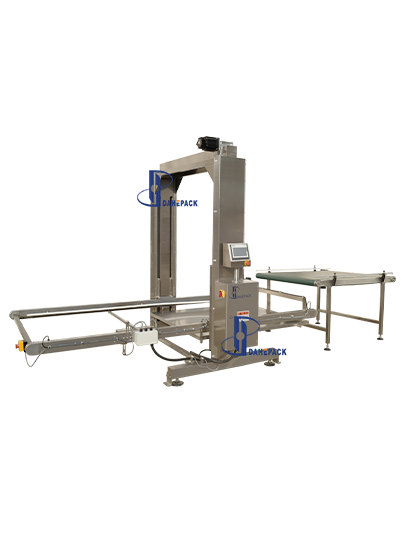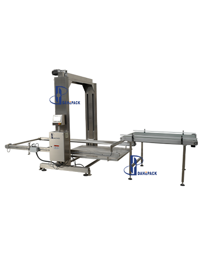 工作原理:人工用地牛將整托盤空罐運至指定位置(碼垛方式為罐口向上),點動啟動按鈕,系統(tǒng)會自動通過光電檢測確定空罐托盤高度,根據(jù)后面緩存皮帶對罐子的需求,將一層空罐通過刮板推至緩存面板上,然后再調(diào)整上下高度與后道的緩存皮帶進(jìn)行高度對接,再將空罐送至緩存皮帶上待用。緩存皮帶會根據(jù)理罐機(jī)對罐子的需求,將罐源源不斷的送至理罐機(jī)上。卸垛機(jī)每卸完一層空罐,設(shè)備自動提醒,收到提醒后人工將兩層空罐之間的紙板拿走,直至整個托盤上的空罐全部卸完,再進(jìn)行下一個循環(huán)。